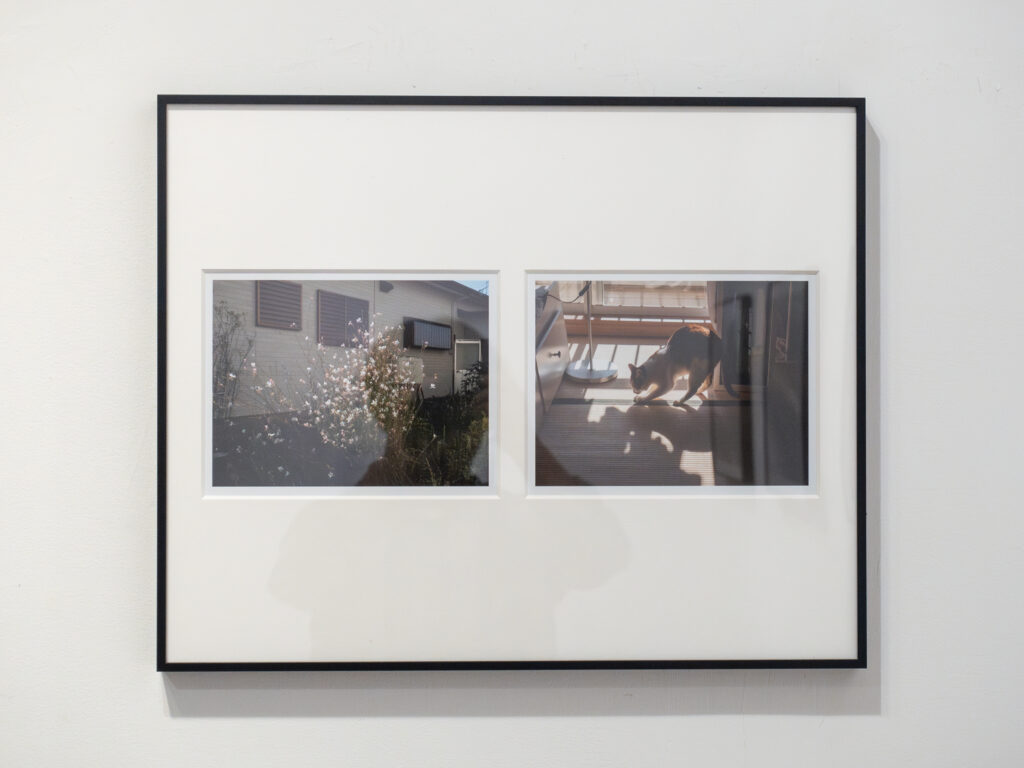 2021年、これからどうやって創作を続けていけばいいのかを考えていた。他者と共に生きていく中で、自分の生き方や態度が変わっていく、その変化を受け入れながら作り続ける方法を探していた。社会性や思想を安易に適応することで作品の背後を想像させること、それによって作品に説得力を持たせようとすることに疲れはじめていた。表面的な意図が伝わったとしても、それは作者と鑑賞者の間で行われる情報交換で、手持ちの情報をいくら交換(解釈)しあっても、その行為が何処か新しい場所へと連れて行ってくれるわけではないという事に気がつき始めていた。かといって内に閉じこもればいいということでもなかった。もっと違う回路を見つけて、そこから始めなければいけないという気持ちが強くなっていた。そんな日々の中で日記を書き始めた。それが何かになるとは思わなかったが、続けていけば今とは違う場所にたどり着いているかもしれないという期待があった。生活と創作を折り重ねていくことで、今までとは違う回路が見つかるのではないかと考えていた。おおよそ1年間書き続けて、翌年の2022年から日記ではなく写真を撮るようになった。始めた動機は同じだった。撮るべきものがあったわけではないが、毎日撮ること、ただ撮ること、というルールのもと1年間撮り続けた。
