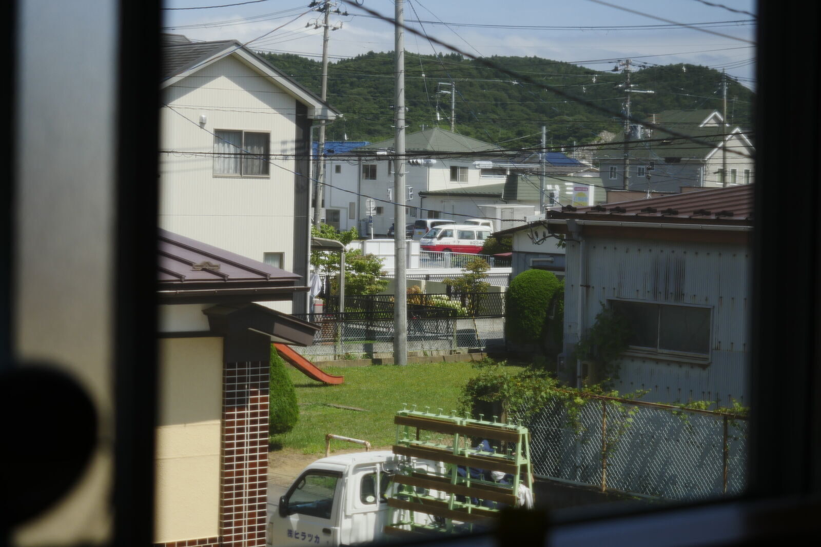 晴れた日にアパートの窓辺から見える景色がわりと好きだ。滑り台しかない小さな公園が見える。最近、草が刈られて草の背丈が低くなった。子供が遊んでいるところを見たことは一度もないが、手入れはされている。植木も剪定されているが形がなぜか歪んだ楕円形になっている。奥に見える低い山の緑が綺麗でなんとなく見入っている。ここらへんには猫がたくさん住み着いていて一家なのかみんな同じように毛が長い。朝家を出るときや夕方帰宅するときに、軒先に猫がよく集っている。どの猫も警戒心が強く近づくと一目散に逃げだしてしまう。部屋の位置的に風が良く入ってくるので、風がある日は窓辺に座るととても心地がいい。